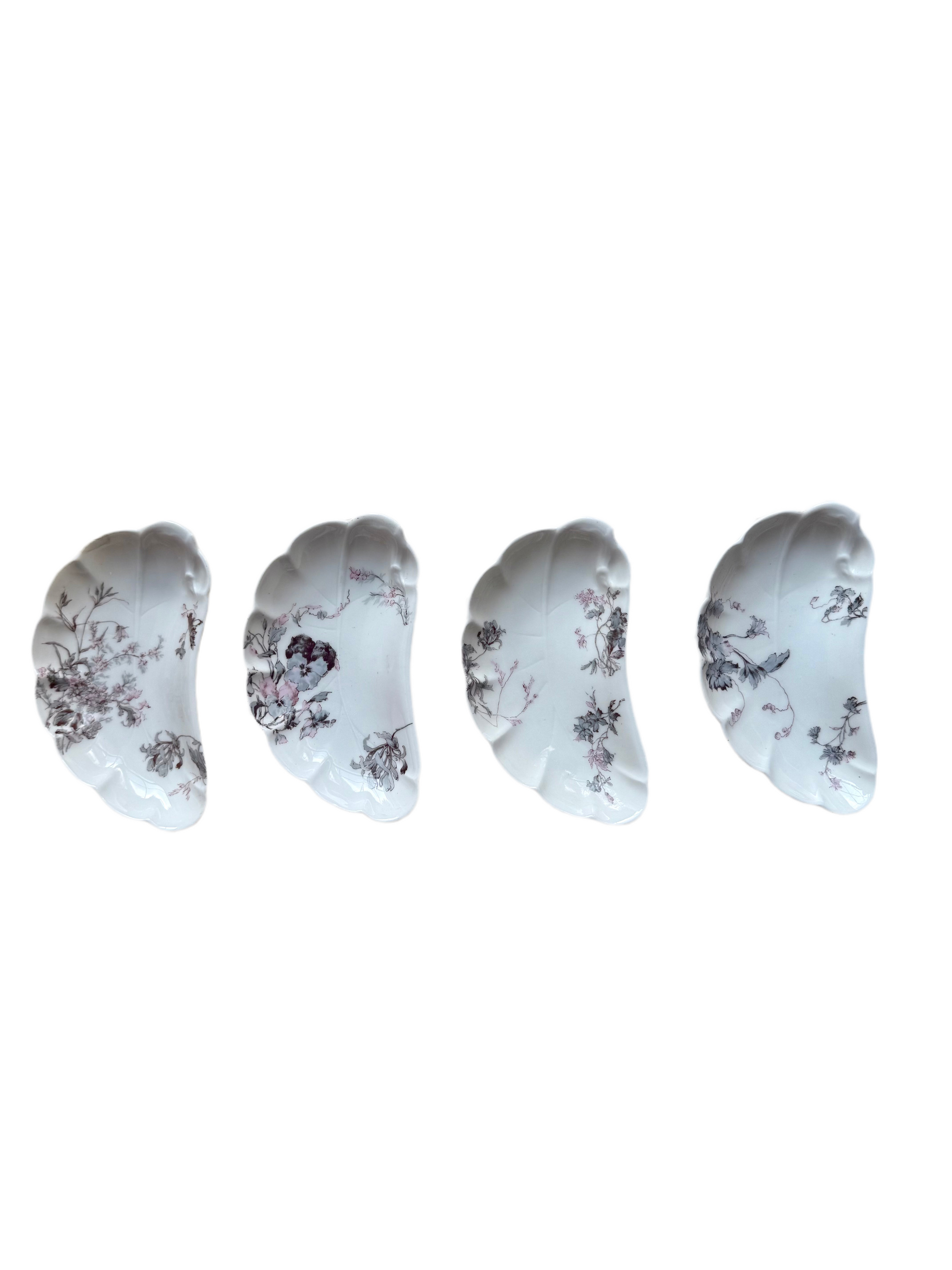 Antique Haviland & Co. Limoges Oyster/Kidney Shaped Hand Painted Floral Dish Set of 4
