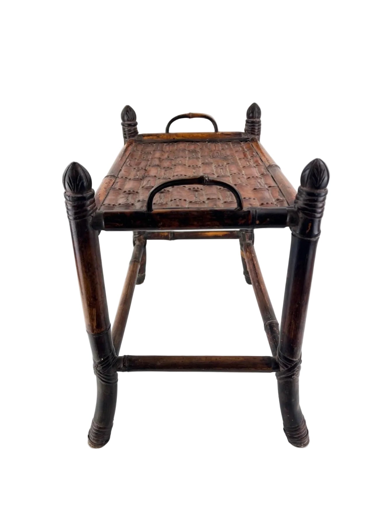 Vintage Rattan Bamboo Side Table with Faux Tray Handles.